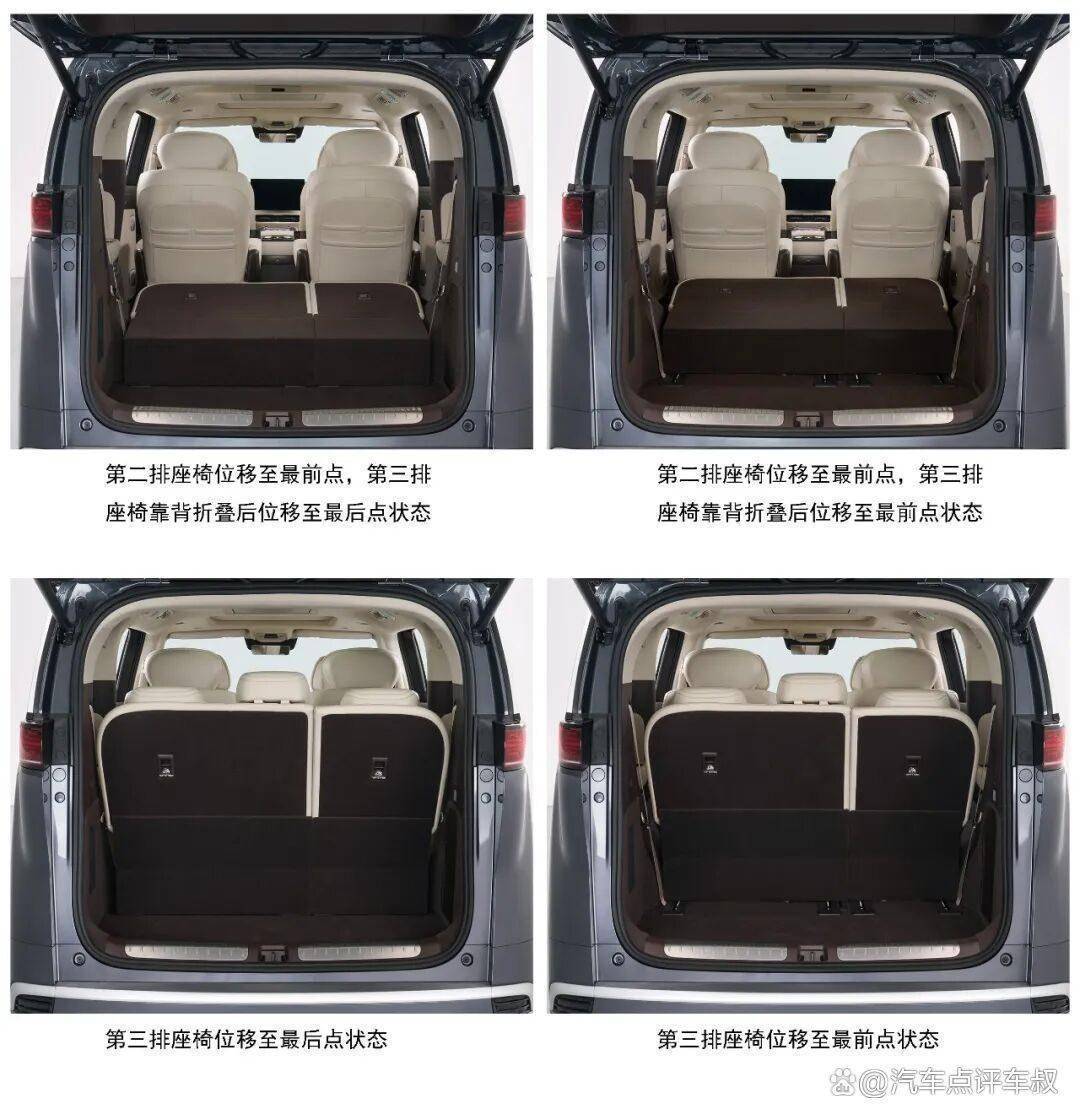 外观上新的格栅造型保留了钻石切割风格,但立体感更强。尺寸维持5250×1960×1900 mm,轴距3110mm,空间和老款一致。真正的变化在三电系统:两驱版电机功率从230kW直接拉到340kW,四驱版前后电机340kW+70kW,综合功率410kW。这套动力放在一台MPV上,用“充沛”来形容都有点保守。