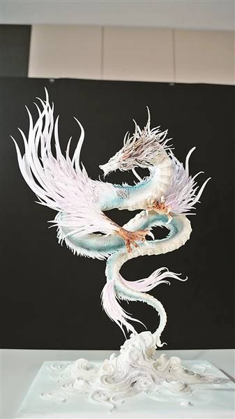 “总之我当时就明白了,要想学好技艺,刻苦练习肯定是有用的。”有一次,老师布置了一个中国龙的糖艺作品。龙的样式复杂,浑身上下布满鳞片,每一片龙鳞都需要纯手工拉出来,才能既保证它薄如蝉翼,又确保厚度均匀,操作难度极大,张勃连着两天一夜不睡觉才制作完成。作品完工后,张勃感觉把自己都给“熬傻了”,浑身筋疲力尽像是打了一场硬仗,回宿舍休息了两三天才缓过神儿。交作品时,老师直夸他“小小年纪却进步迅速,比学长学姐们做得还要好”,还额外奖励了他很多做糖艺练习的原材料和工具。
