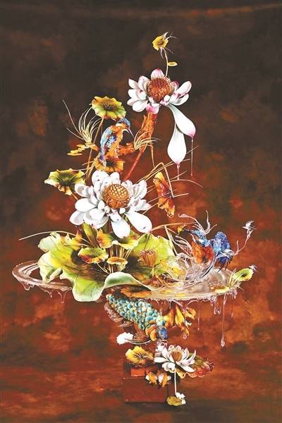 写实油画风格糖艺作品《栖翠棠璃》