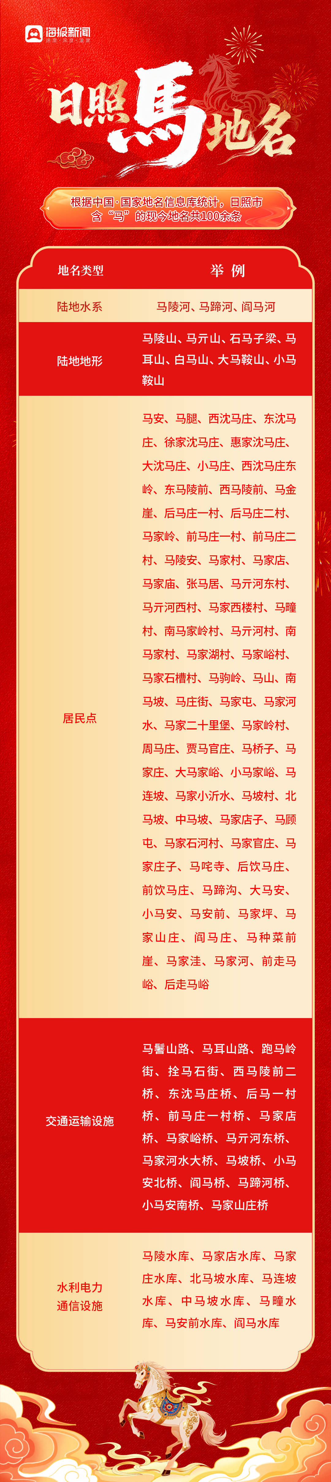 记者从中国・国家地名信息库的统计数据发现,日照的“马”元素远比想象中深厚:这座山海相拥的城市,现今含“马”字的地名竟有上百个。它们散落于区县之间,藏在村落与山水之中,每一个名字背后,都印刻着日照的地理特征与人文记忆。