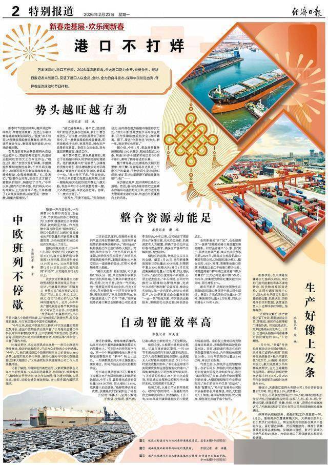 格局之变,从港口节点到网络核心。硬件扩容的同时,一张辐射内外的立体物流网络正加速编织。1月下旬,2026年首列黄骅港始发的中欧班列鸣笛启程。来自长三角地区的货物经海运抵港后,无缝换乘铁路驶往欧亚大陆。目前,黄骅港已常态化运行多条国际班列专线,内外贸航线拓展至20条。2025年货物吞吐量达3.66亿吨,再创历史新高。