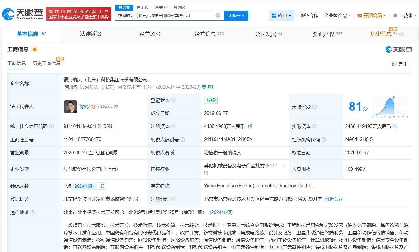 南方财经3月19日电,天眼查App显示,近日配资炒股平台配资,银河航天(北京)网络技术有限公司发生工商变更,企业名称变更为银河航天(北京)科技集团股份有限公司。该公司成立于2019年6月,法定代表人为徐鸣,注册资本约4438万人民币,经营范围含卫星技术综合应用系统集成、微小卫星生产制造、卫星移动通信终端制造等。股东信息显示,该公司由徐鸣、建银金辰创业投资有限公司、合肥产业投促高新创业投资基金合伙企业(有限合伙)等共同持股。