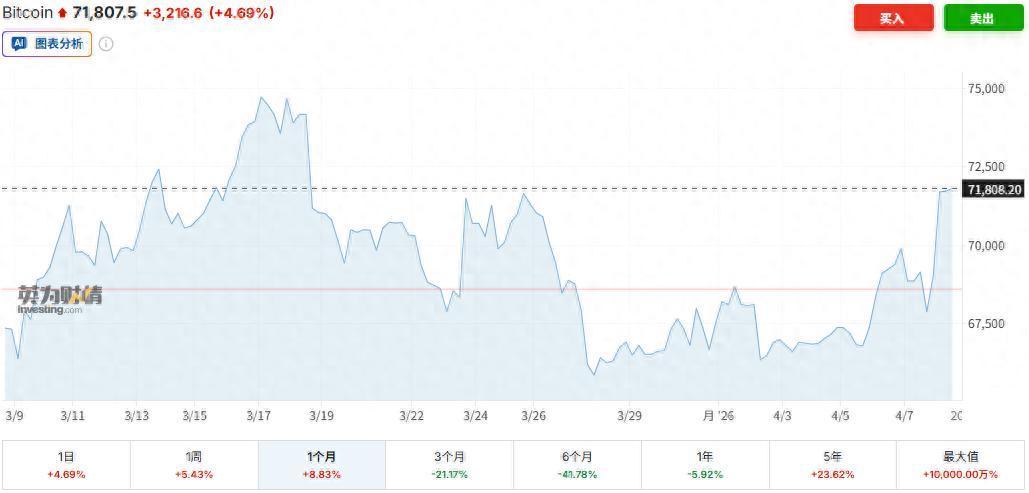 智通财经APP注意到,在美国与伊朗达成初步停火协议后,比特币升至三周高点,风险资产随之全线大涨。